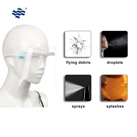 - Protective face visor with comfortable glasses frame.