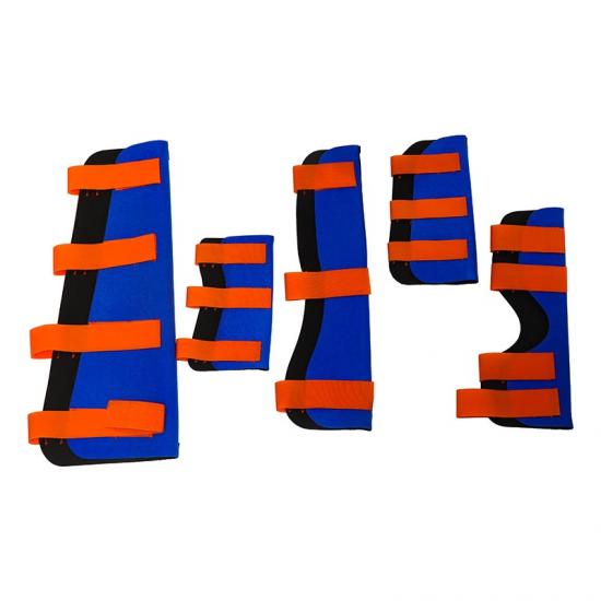 May include splints for upper limbs (arms), lower limbs (legs), and joints (wrist/ankle).